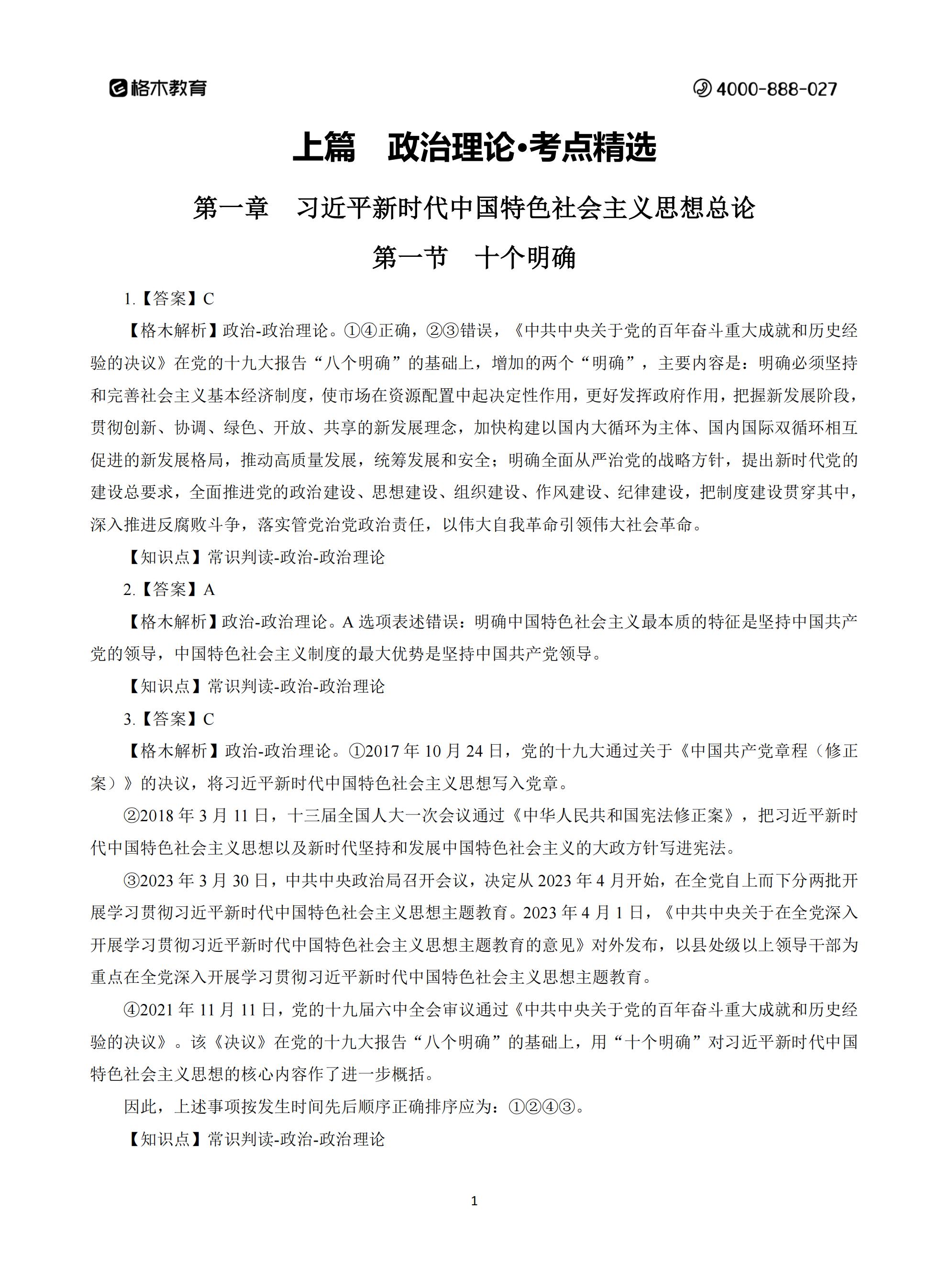 政治理论第一章习近平新时代中国特色社会主义思想总论
