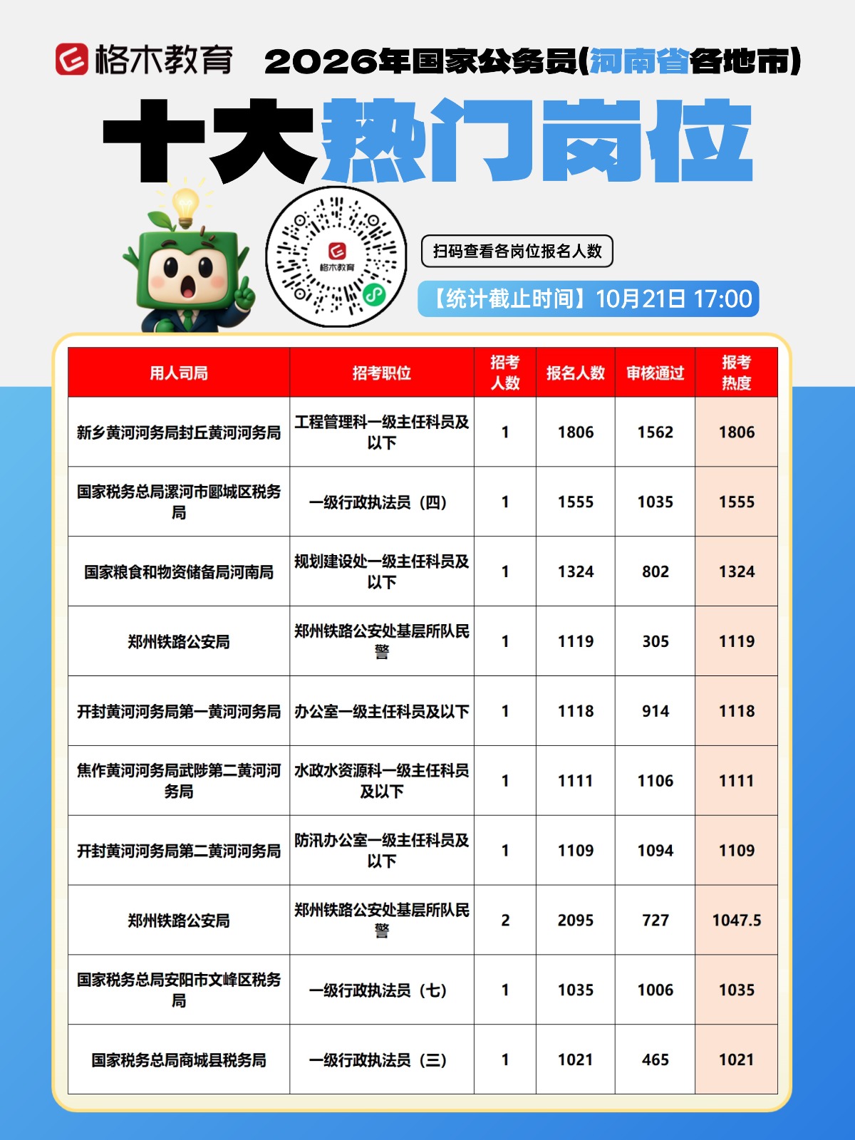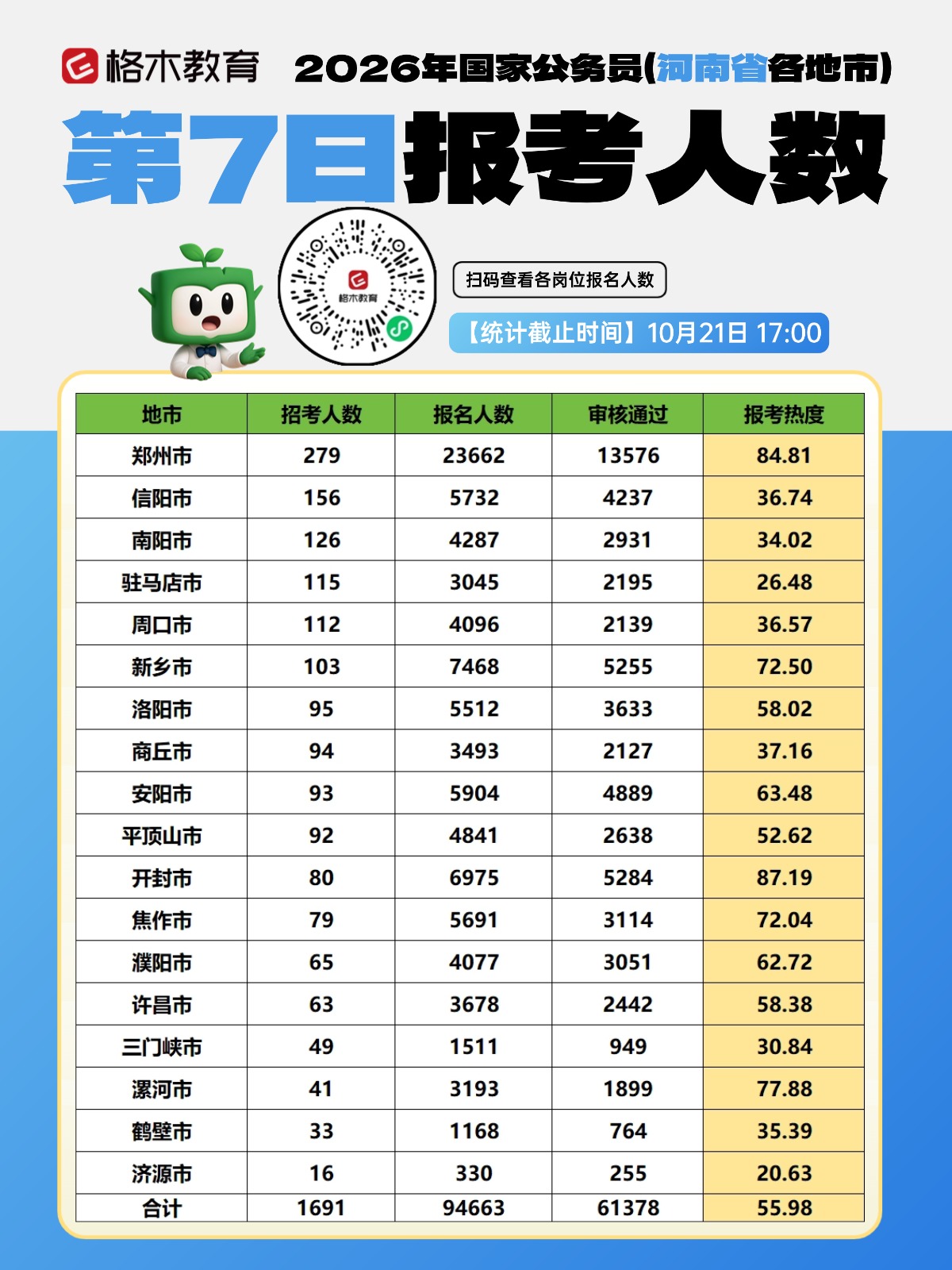 2026国考报名人数:河南岗位94663人报名/61378人审核通过【截至10月21日17:00】